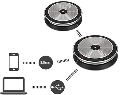 Відзначимо також ще одну вагому перевагу новинки: SP 220 - це також один з найпростіших і найдоступніших варіантів переходу на бізнес-зв'язок сучасного рівня. За допомогою кабельного з'єднання SP 220 легко підключається до будь-якої системи уніфікованих комунікацій. Окрім того, кожен з блоків незалежно і так же легко можна підключити до мобільного телефону чи планшета щоразу, коли потрібний канал високоякісного голосового зв'язку. А за допомогою спеціального кабелю-перехідника SP Link (входить до комплекту поставки) блоки спікерфона SP 220 можна розміщувати на відстані до 2.1 метра один від одного, якщо того вимагають обставини зустрічі.
